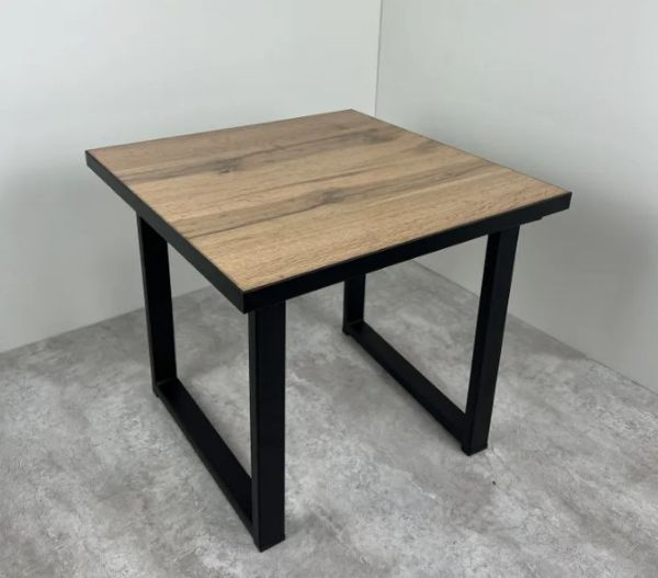 Металлический каркас черный со столешницей из ЛДСП 25 мм, кромка ПВХ 1 мм. Производство: РФ.