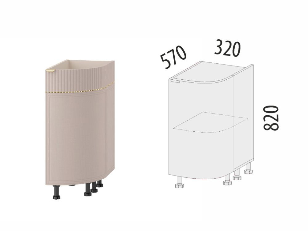 Напольный шкаф торцевой правый «Флоренция 107.64» является частью модульной программы для кухни «Флоренция».