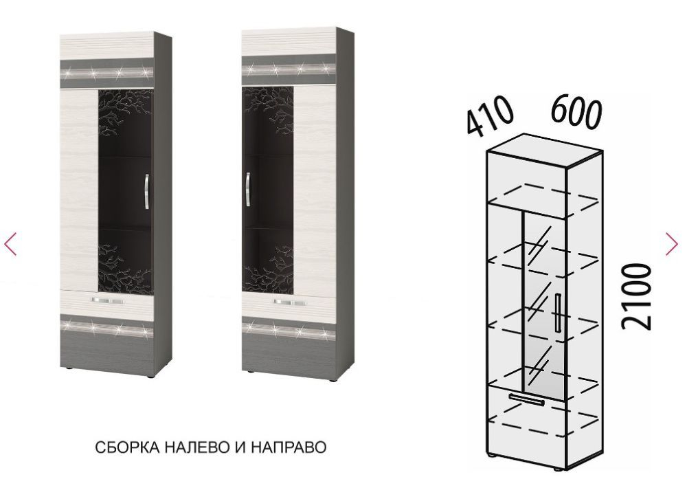 Шкаф-витрина «Графит 604.06» является частью модульной программы «Графит». Коллекция «Графит» – пример совмещения модных тенденций и универсальности.
