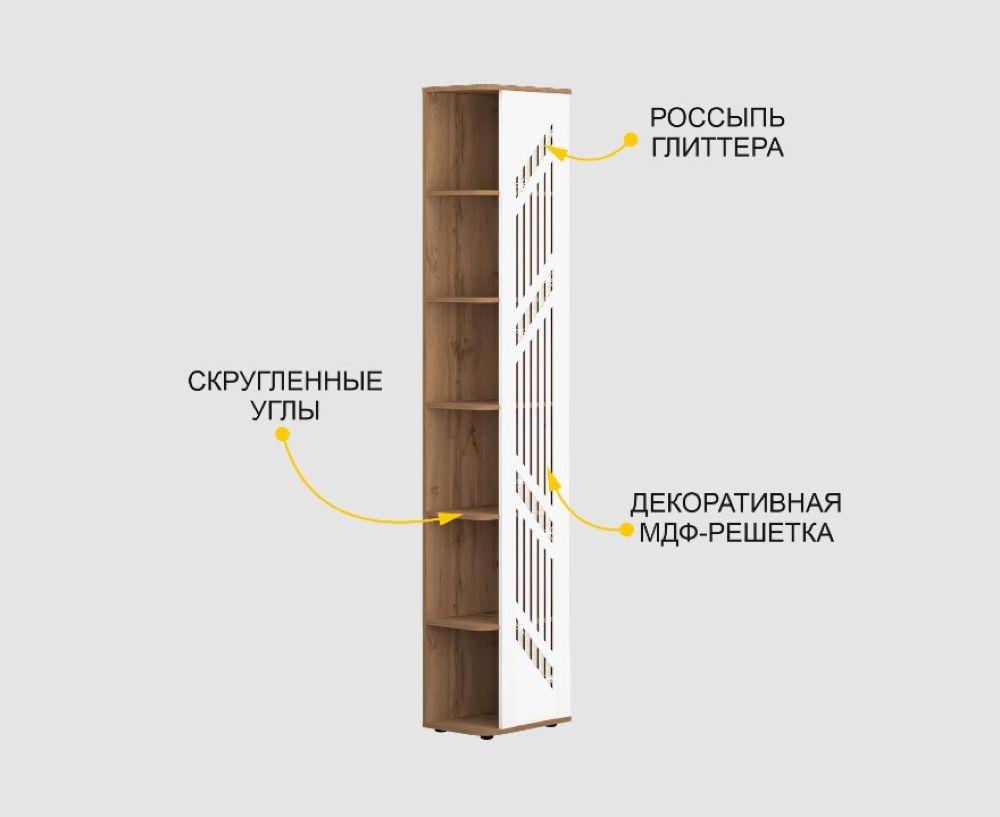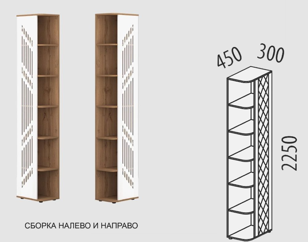 Торцевой стеллаж позволяет красиво завершить модульную композицию.