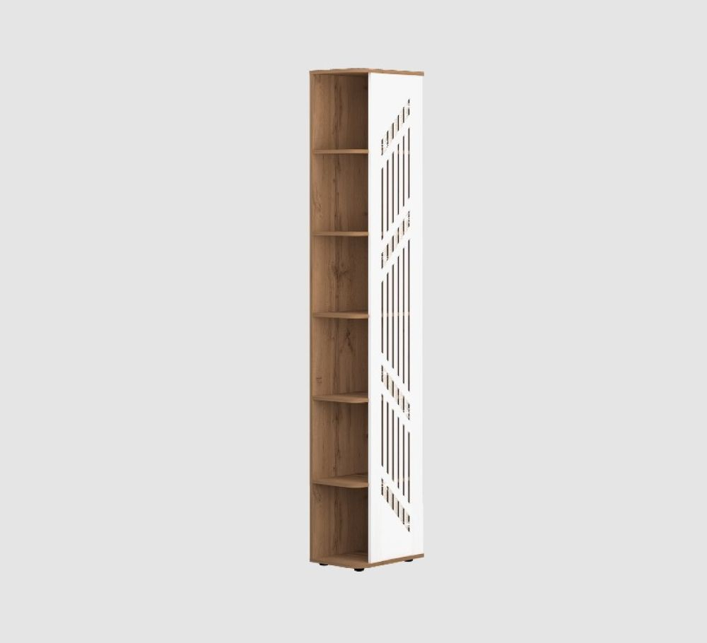 Стеллаж «Монако 403.15» является частью модульной серии «Монако». «Монако 403» – образец элегантного стиля и утонченного вкуса. Сочетание матовой белоснежной поверхности фасадов с благородной древесной текстурой «Дуб Вотан» создает особую атмосферу природной гармонии.